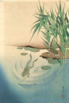 ka-wa-zu (frog) to-bi-ko-mu (jumping into)